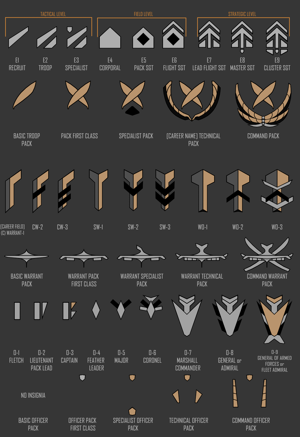 In 2022, Todd the Avali published a book of Avali Lore, and in one section he made a visual of all the ranks the Avali military had.